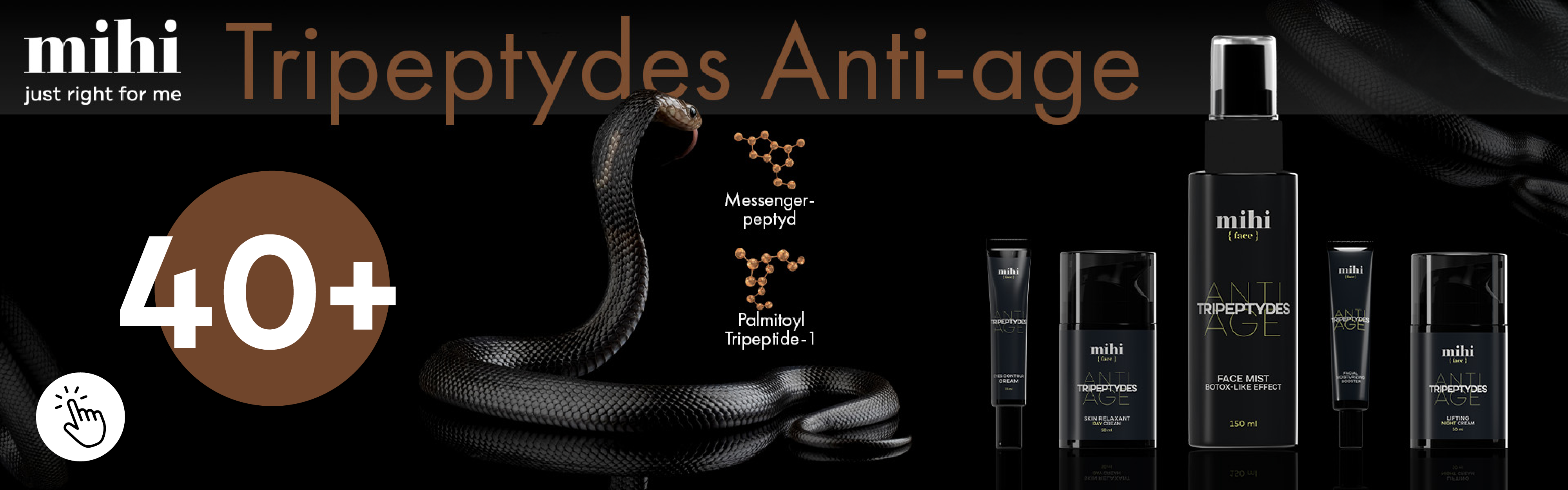 Mana mīļākā Tripeptides Anti-age sērija. Droša alternatīva botulīna toksīna injekcijām. Noteiktā vecumā grumbas kļūst redzamas un var būt traucējošas. Šis bija mans gadījums, tāpēc izmantoju šo kosmētiku un nebiju vīlusies. Lietoju tos pamīšus ar citiem kosmētikas līdzekļiem. Reizēm jādod ādai atpūta un jāļauj tai izlemt, kāda kosmētika tai konkrētajā brīdī ir nepieciešama. Es atgriežos pie šīs sērijas ik pēc 3 mēnešiem, lai grūtos brīžos atbalstītu savu sejas ādu. Es to iesaku no visas sirds. Man ir 50 gadi, tāpēc es rūpējos par savām grumbām.